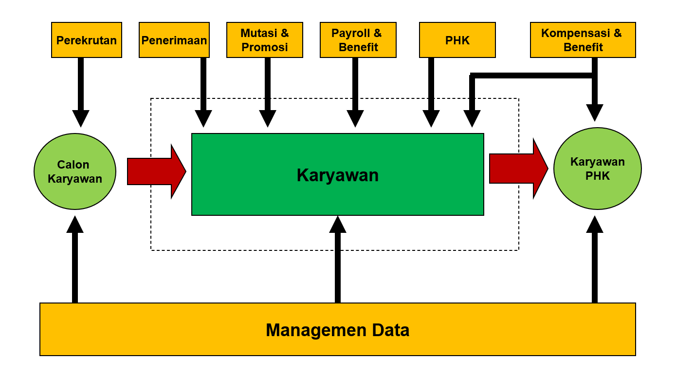 Proses karyawan dari masuk hingga keluar lengkap ada di modul ini.